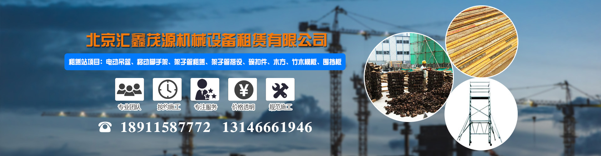 北京匯鑫茂源機械設(shè)備租賃有限公司專業(yè)租賃腳手架,品種全,價格低,質(zhì)量好,資質(zhì)齊全,受用戶一致好評,并有施工經(jīng)驗豐富的架子工團隊,可承接各種腳手架搭、拆、運一條龍服務(wù),本公司本著信譽至上、 客戶至上的原則,歡迎大家咨詢洽談。